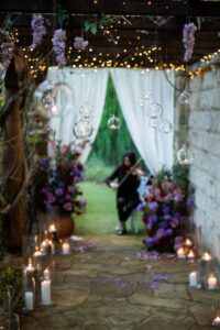 Your partner arrives at our Secret Garden, greeted by an elegant host who guides them through the enchanted gates. They make their way under the tree canopy to softly playing music to find you waiting at the top of the stone staircase… The proposal unfolds! Enjoy some time exploring the private gardens before being seated to indulge in your delectable 4-course meal, prepared exclusively by your Private Chef. Completely secluded, the gardens are yours.